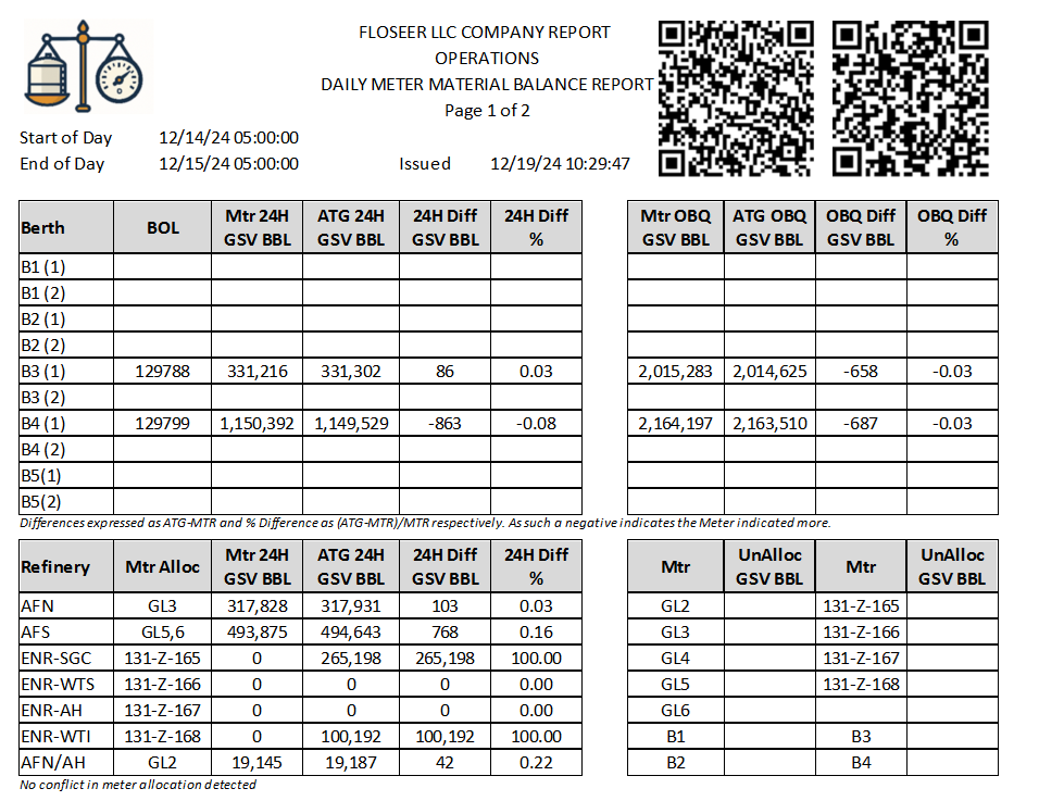 By analyzing both tank level data and Flow meter readings in real time, ValiChex™ ensures accurate transferred volumes at the custody transfer point. It performs a continuous material balance between tank inventory changes and Flow data, automatically identifying discrepancies such as leaks, mismeasurements, or unaccounted loss. Calculations are performed in compliance with API or ISO standards, as appropriate.